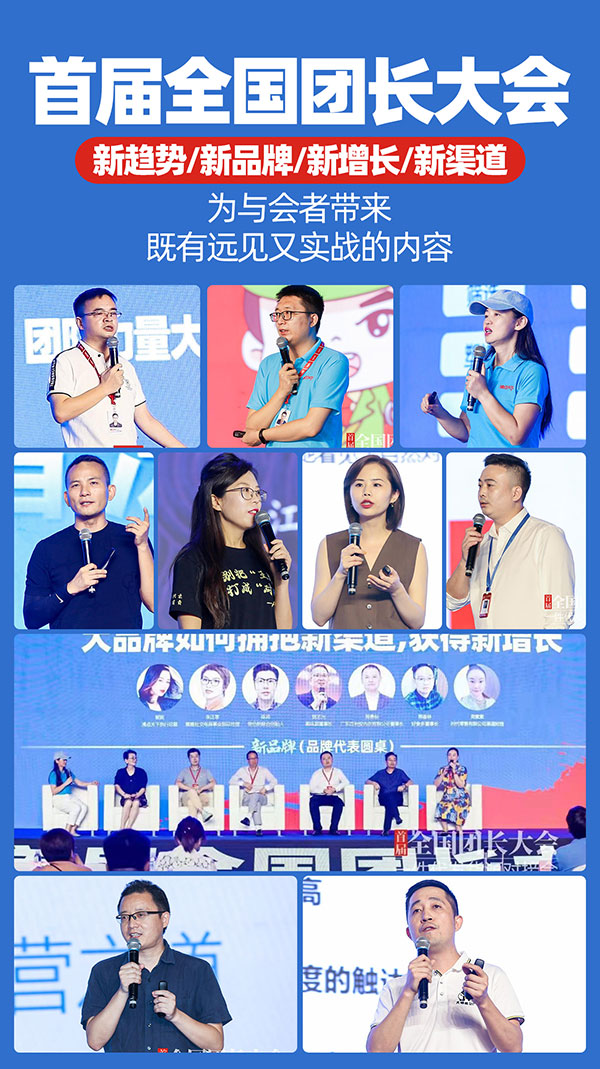 首届全国团长大会设有新趋势,新品牌,新增长和新渠道4大版块为主题,为与会者带来既有远见又实战的内容。