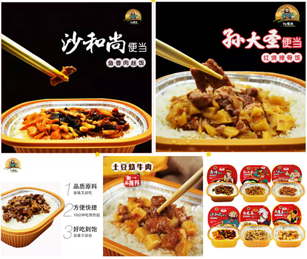 “沙悟净”品牌有七种口味,六款米饭一款土豆粉火锅,大米严选精品稻花香大米,成饭食味清淡略甜,绵软略粘,芳香爽口,饭粒颗粒饱满,表面油光艳丽, 剩饭不回生,是百姓餐桌上的首选,现蒸现吃 自热快捷,Q弹软糯 米香四溢,米水配比 恰到好处。