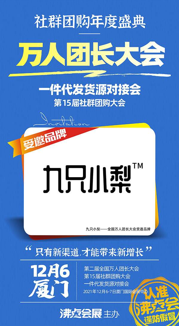 沸点会展主办的第15届新零售博览会,聚集了全国头部团购主体,包括社群团购平台,各类工具下的团长和群的群主,同时也吸引全国各个领域优秀的供应商资源,是一项以行业交流,促进品牌合作为目的的大型活动。九只小梨诚挚欢迎更多优质的合作伙伴于12月6-7日前往厦门国际会展中心B3B21展位观临指导,共同发展,合作双赢。