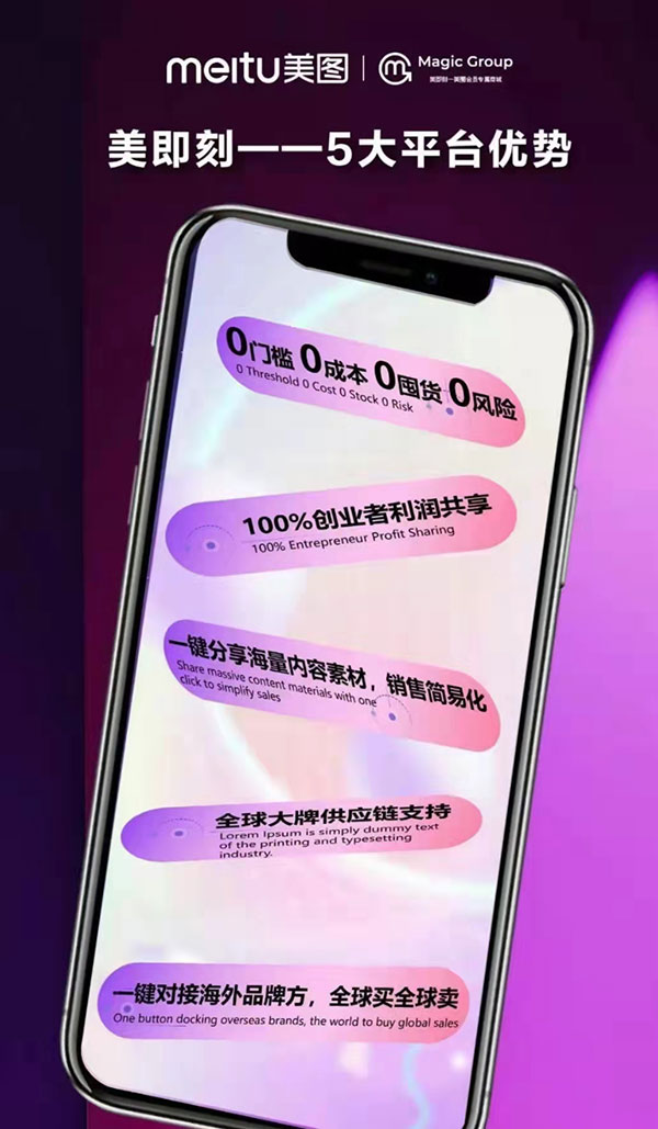 美即刻-美图社交电商平台倡导P2B2C模式,赋能B端,精准导流及拓展团队,为C端消费者精选全球美物,打造全新轻创业社交分享平台。