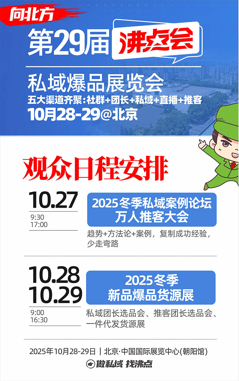 第四届万人推客大会在北京隆重举办,本次活动为期3天,10月27号推客趋势大会/私域案例大会,28-29号推客选品会暨私域爆品展。
