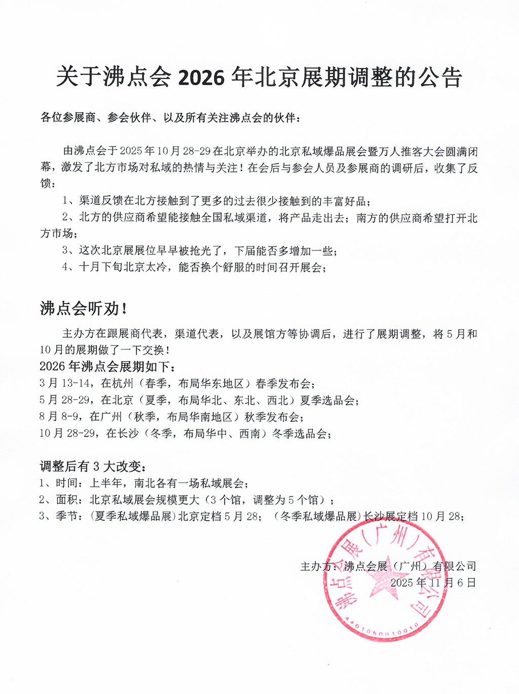 关于沸点会2026年北京私域大会档期调整