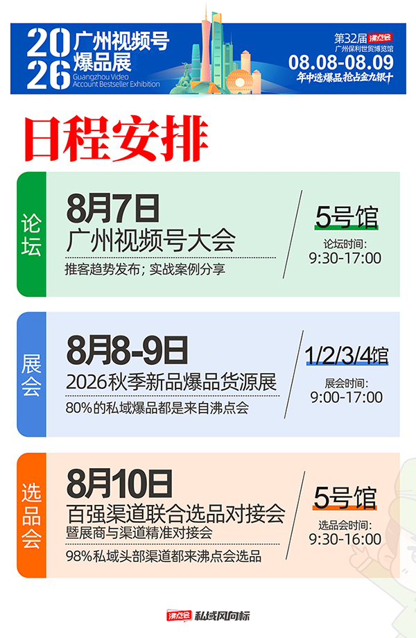 由蓝门公司联合沸点会2026年8月8-9日在广州举办广州视频号爆品展!