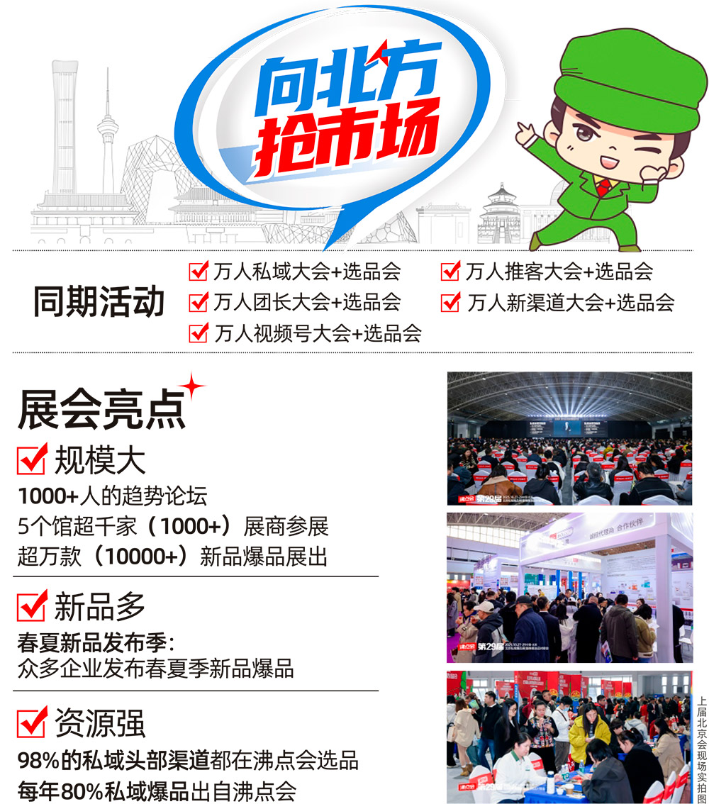“向北方,抢市场!”2026年5月28-29第31届沸点会私域选品会定于北京·中国国际展览中心举办!将带着全国渠道走向北方选品,也带着全国供应商链接北方的渠道!