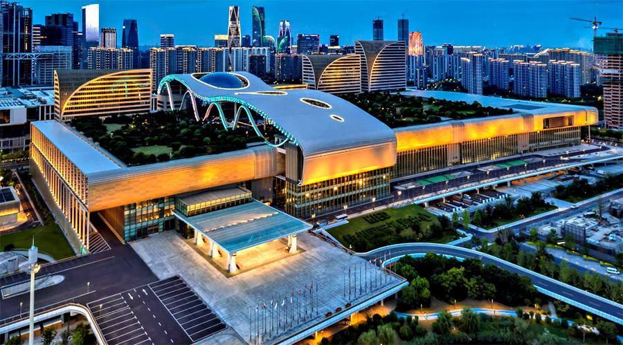 展览中心面积9万平方米,共10个展厅分布于三层,各展厅面积自7700平方米至10000平方米不等,满足特种展览、大型集会、体育休闲等不同规模及不同类型的展会需求。地下停车场可提供4000个车位。展览中心致力于构造高端、高效、高质的展览服务平台,配套先进的硬件设施,细致卓越的定制化服务,能满足不同规模及类型的展会同时办展需求,实现高品质的形象布展。