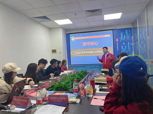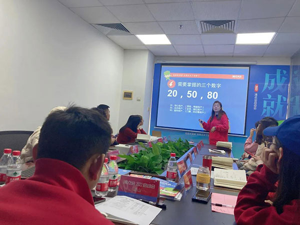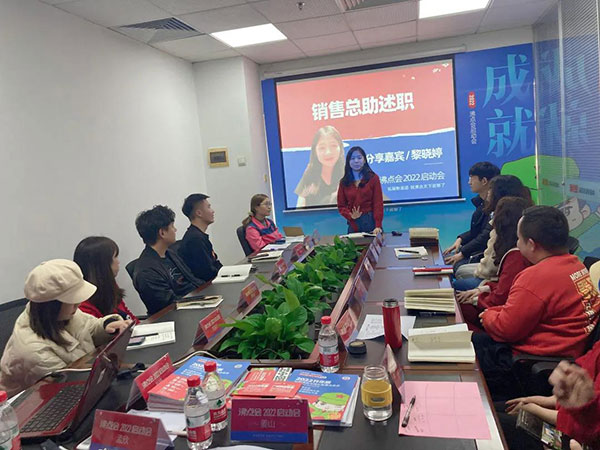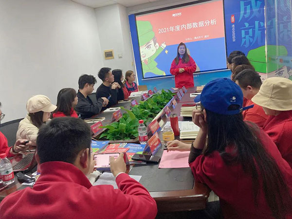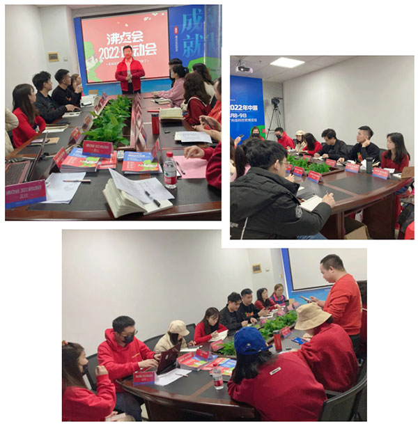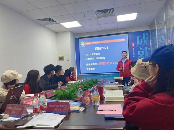 沸点会展总经理姜山在会上分析了2个榜样展会的案例,并且说:沸点天下引领着新渠道这个赛道,我们不仅抢到了先机,还一直推动着渠道的发展;2022将是各个品类进入新渠道的一年,我们所有人在把握机会,同时遵守沸点天下2个黄金法则:听话,照做;跟紧公司的步伐,2022每个人都将目标达成。