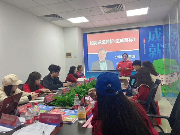 接着是经验分享环节:郭浩分享了自己如何在心态不好,业绩落差很大的情况下,如何设定目标,把握优势,实现业绩突破,并成为2021年年度冠军的;