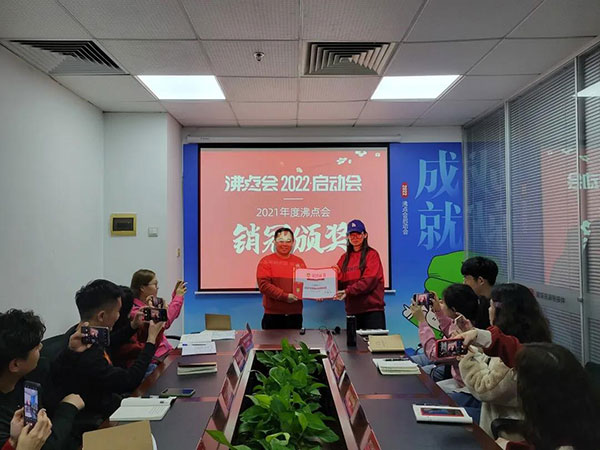 在2022启动会上,还对2021年度沸点销售冠军,以及2021年度沸点会新人王进行了颁奖。