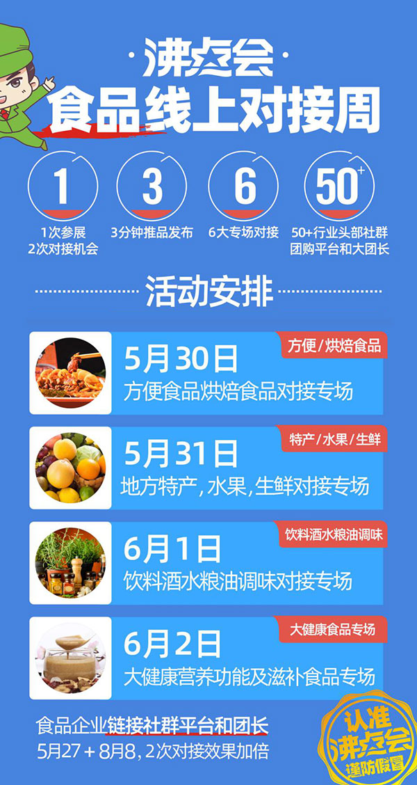 沸点会食品线上周还有进行中,接下来还有4场对接,如果你们家也是食品类的企业,如果你们也想对接大平台大团长,欢迎联系沸点天下工作人员报名。