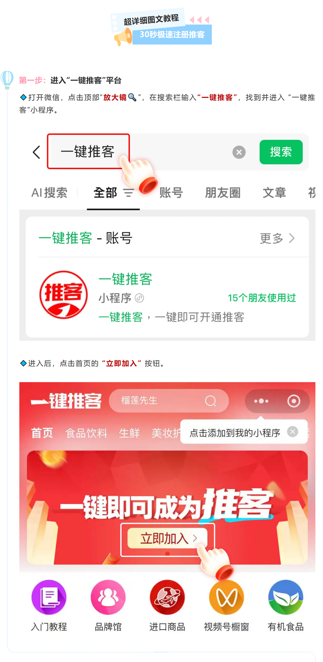 务必选择经过【WX官方认证】、具备WX小店服务商资格的平台,保障你的权益与收益安全。例如我们今天实操使用的平台:一键推客!