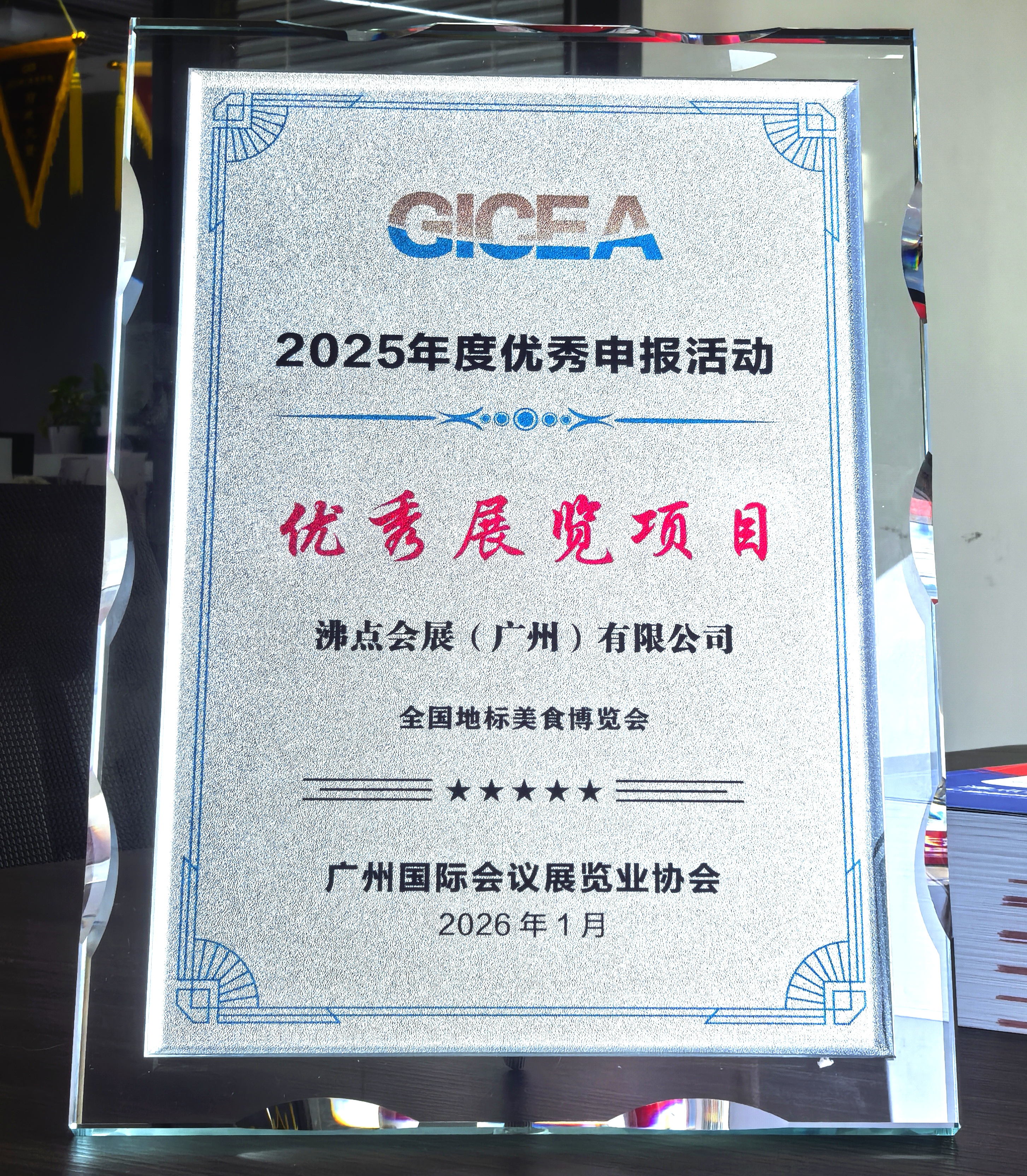 近日,在2025年度广州国际会议展览业协会年会上,由沸点会展(广州)有限公司主办的"全国地标美食博览会"被评选为"2025年度优秀展览项目",这一殊荣充分彰显了该展会在推动地方特色美食产业发展和会展业创新方面的突出贡献。