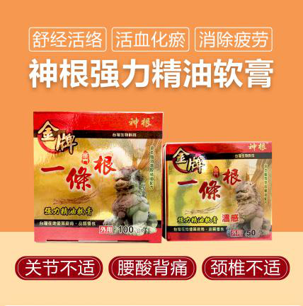 金牌一条根位于台湾屏东,由一群有着制造、研发酸痛贴布,30年经验的团队所创立,致力于中药制造、研发、针对市场需求,专业研究开发草本萃取精油以温和不刺激,不伤皮肤效果加倍为诉求,生产出一条根系列产品,酸痛贴,按摩霜,按摩油等系列产品。主要作用于:缓解风湿,腰腿疼痛、跌打损伤、腰肌劳损、颈椎病、肩周炎、产后腰疼...家中常备,有备无患。